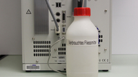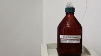 - Die Eluentenflasche mehrmals mit Reinstwasser vor-spülen. Einen 2-L-Messkolben mit ca. 1 L füllen.