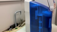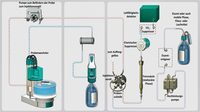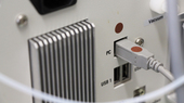 - Dafür ziehen wir die Leitung aus der Flasche "Verbrauchtes Fliessmittel" und verbinden sie mit dem Luer-Anschluss auf der Geräterückseite ("Verbrauchtes Fliessmittel).