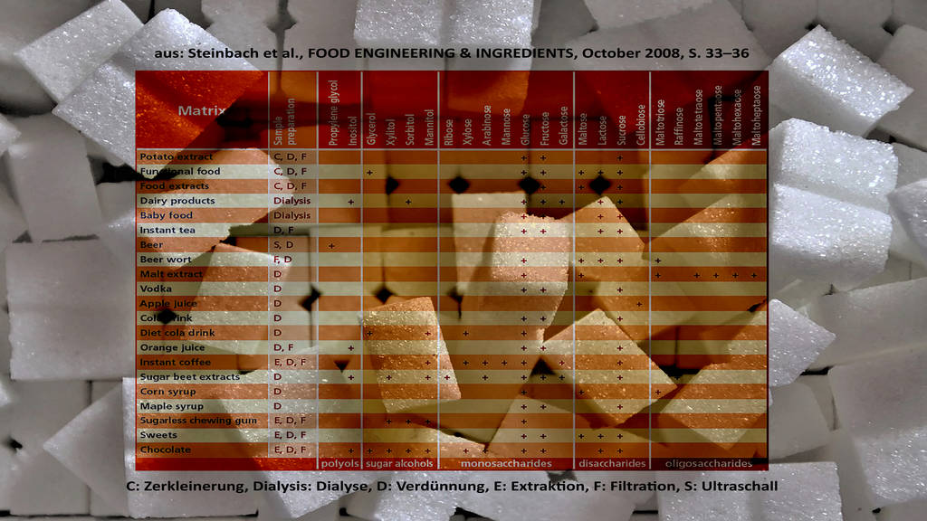 Internationale Richtlinien wie ISO, DIN oder AOAC empfehlen die Ionenchromatographie. Findet ihr heraus, welche Zucker in diesen Normen bestimmt werden?