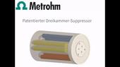 Im Leitfähigkeitsdetektor werden die von der Trennsäule eluierenden Komponenten als Funktion der Zeit detektiert. Dazu mehr in einem der folgenden Videos in diesem Kapitel. Der Berzelius-IC arbeitet mit Leitfähigkeitsdetektion ohne Suppression. Was Suppression ist, dazu später mehr.