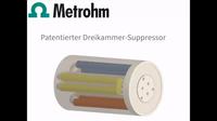 Ihr wichtigster Detektor, wie weiter oben gesehen, ist der Leitfähigkeitsdetektor. Der Berzelius-IC misst die direkte Leitfähigkeit, jedoch nur mit mässiger Empfindlichkeit. Deutlich geringere Nachweisgrenzen erzielt die Leitfähigkeitsdetektion, wenn ihr eine Suppression vorgeschaltet ist.