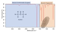 Die Molekülschwingungen bestimmter Atomgruppen wie z. B. der Carbonylgruppe C=O liegen oberhalb einer Wellenzahl von 1500 cm ̄ ¹. Sie sind charakteristisch für Stoffe und eignen sich zur Bestimmung der funktionellen Gruppen von Molekülen. Typisch für Aceton ist die C=O-Streckschwingung bei einer Wellenzahl von 1715 cm ̄ ¹.