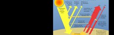 Wasserdampf und Spurengase in der Atmosphäre wie Kohlendioxid, Ozon oder Methan absorbieren den grössten Teil der abgestrahlten Infrarotstrahlung. Die Folge ist eine Erwärmung der Atmosphäre: der natürliche Treibhauseffekt.