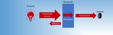 - Die Transmission ist das Verhältnis der Intensitäten des absorbierten und eingestrahlten IR-Lichts. Die Angabe erfolgt in %.