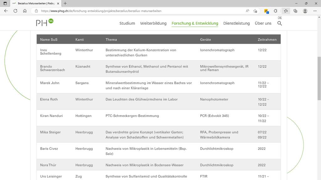 Berzelius – Im Hightech-Labor der Naturwissenschaften ist ein gemeinsames Projekt des damaligen Instituts Fachdidaktik Naturwissenschaften (heute: Institut Mathematische, Naturwissenschaftliche und Technische Bildung) der PHSG und der Metrohm Stiftung.