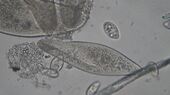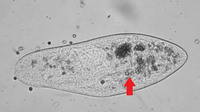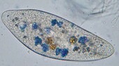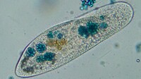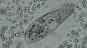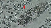 Pantoffeltierchen (Paramecium) frisst Hefe