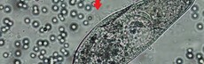 Kongorot-Hefe im "Bauch" des Pantoffeltierchens