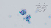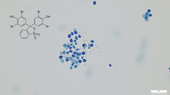 Im Hintergrund siehst du Hefezellen, die ich mit Bromphenolblau färbte. Das Foto habe ich mit dem Mikroskop Zeiss Axiolab 5 und der Kamera Zeiss Axiocam 208 des Berzelius-Projekts bei 400-facher Vergrösserung geschossen.