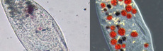 An diesen Einzellern kannst du hervorragend die Nahrungsaufnahme, Verdauung und Ausscheidung primitiver Lebensformen unter dem Mikroskop erforschen. Am besten gelingt das, wenn wir die Nahrung, etwa Bäckerhefe, mit einem pH-Indikator einfärben. Der Farbumschlag bei verändertem pH-Wert gibt uns einen tieferen Einblick in den Verdauungsprozess.