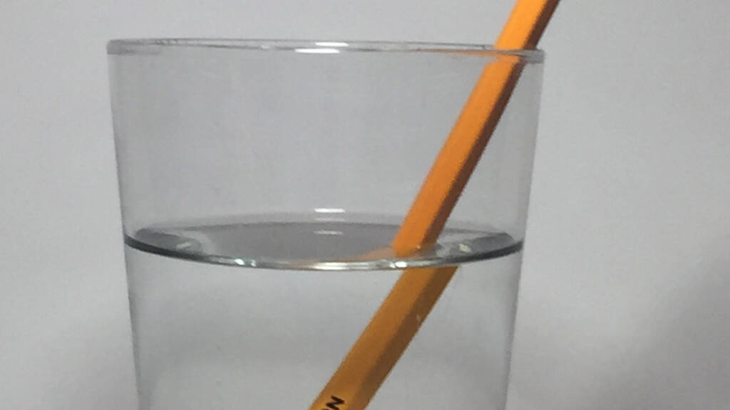 Bei reinem Wasser (Brechungsindex n = 1.3330 bei 20 °C) wird in diesem Versuchsaufbau das Licht am stärksten gebrochen. Eine Wasser-Zucker-Lösung ist optisch dichter (z. B. bei 10 m-% Saccharose und 20 °C ist n = 1.3479) und damit der Unterschied in den Brechungsindizes zu Glas (abhängig von der Glassorte n ~ 1.5) kleiner. Je grösser der Zuckergehalt umso geringer der Unterschied der Brechungsindizes zwischen Probe und Glas und damit auch die Brechung.