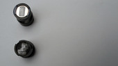 in einem Gehäuse plus Schraube und Feder zum Verschieben und damit Kalibrieren.