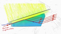 Dies alles erklärt nicht wie es zur Hell-Dunkel-Trennung kommt. Denn das Licht fällt auf der ganzen Fläche des Prismas ein. Lichtstrahlen die weiter oben einfallen, kommen auch weiter oben wieder aus dem Prisma heraus .