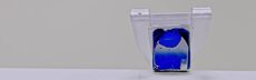 mit blau lackiertem Boden und Seitenflächen.