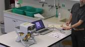 Im Video simulieren wir die handgehaltene Messung; das Gerät ist dabei ausgeschaltet. In der Schweiz zugelassene Geräte, wie das unsere, dürfen aus Schutzgründen nur zweihändig bedient werden. Als zusätzlicher Schutzmechanismus schaltet das RFA-Gerät nach wenigen Sekunden aus, wenn in den leeren Raum gemessen wird (keine Rückstrahlung).