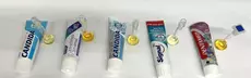 Einzig bei Total Original (von Colgate) werden mit der Photometrie geringe Mengen an Titandioxid nachgewiesen, obwohl davon nichts auf der Liste der Inhaltststoffe vermerkt ist. Mit der RFA-Messung kann ich aber kein Titan nachweisen. Der photometrisch gemessene Extinktionswert dieser Zahnpastaprobe ist sehr klein, sodass ich von einem Messfehler ausgehen muss (z. B. durch eine Verunreinigung).
