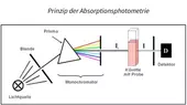 Der durch Absorption geschwächte Lichtstrahl trifft nun auf den Detektor, welcher nun automatisch die jeweiligen Extinktionswerte berechnet.