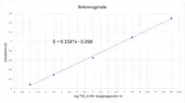 E = 1.134 => x = 7.797 mg bzw. 0.7797 m-% TiO₂