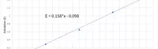 Mit Hilfe der Referenz- oder Kalibriergerade kann ich die jeweiligen Titan(IV)-oxidgehalte berechnen. Dazu muss ich die mathematische Beschreibung der Kalibriergeraden nach x, dem unbekannten TiO₂-Gehalt, auflösen. x wird so als Funktion des gemessenen einheitenlose Extinktionswerts ausgedrückt.