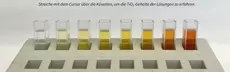 Diese gelborange Färbung bildet sich nur bei Anwesenheit von Titan(IV)-Ionen: Je dunkler sich der Aufschluss einer Zahnpasta verfärbte, umso mehr Titan(IV)-oxid enthält dieser.